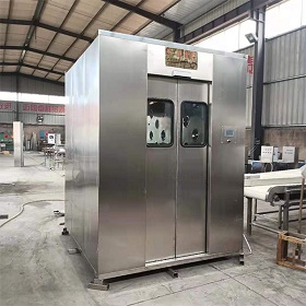 7、吹淋完畢:風淋室風機停止運作后二秒后才打開出門,離開風淋室。在風淋過程中風淋室前后門皆處于鎖定狀態,內部人員不要強行開啟,以免損壞互鎖裝置及門鎖,若遇到緊急情況,請按下急停開關,風淋室將工作停止,此時進出門任意開啟通行。在待用閑置期間,風淋室進出門處于電子互鎖狀態。只能打開進出門的其中一面,請不要強行開啟。